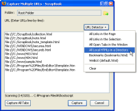 Capture Multiple URLs is a tool to capture multiple URLs in sequence. We can do some special tasks by utilizing this tool. (1) Capture HTML files in local disk Use [URL Detector] > [All Local HTMLs in a Directory]. (2) Capture URL in the clipboard If the clipboard contains a URL, it is pasted automatically. |
