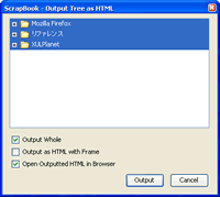 Output Tree as HTML is a tool mainly for users who want to view ScrapBook data under non-Firefox browser (IE, Opera, etc.). You can customize the style of 'tree.html' by editing 'tree.css' in 'tree' directory under the ScrapBook directory. |