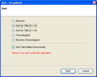 You can sort items in a folder in alphabetical or chronological order by right-clicking a folder > [Sort Folder]. Also you can sort the entire tree by Sort Entire Tree. There are two notices: * Items are sorted in the order as folders > pages > notes. * You can't undo the sorting operation. |