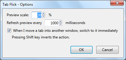 To configure Tab Flick, go to [Tools] > [Add-ons], select [Tab Flick] and press [Options] button. |