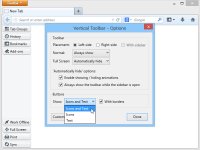 'Show' option of Vertical Toolbar overrides the global 'Customize Toolbar' > 'Show' option. |